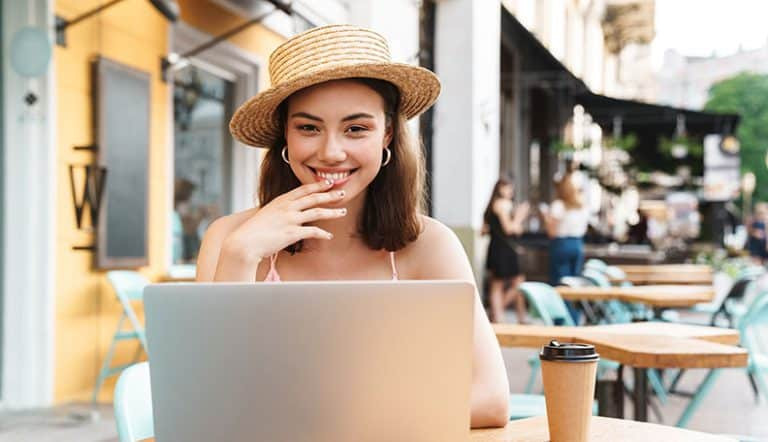 5. 害羞地微笑 这种含蓄的微笑表示她想让你注意到她的兴趣,但还没准备好完全表达出来。